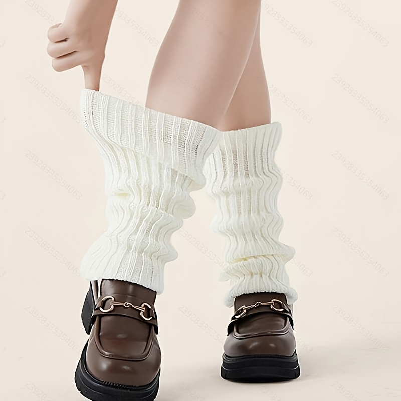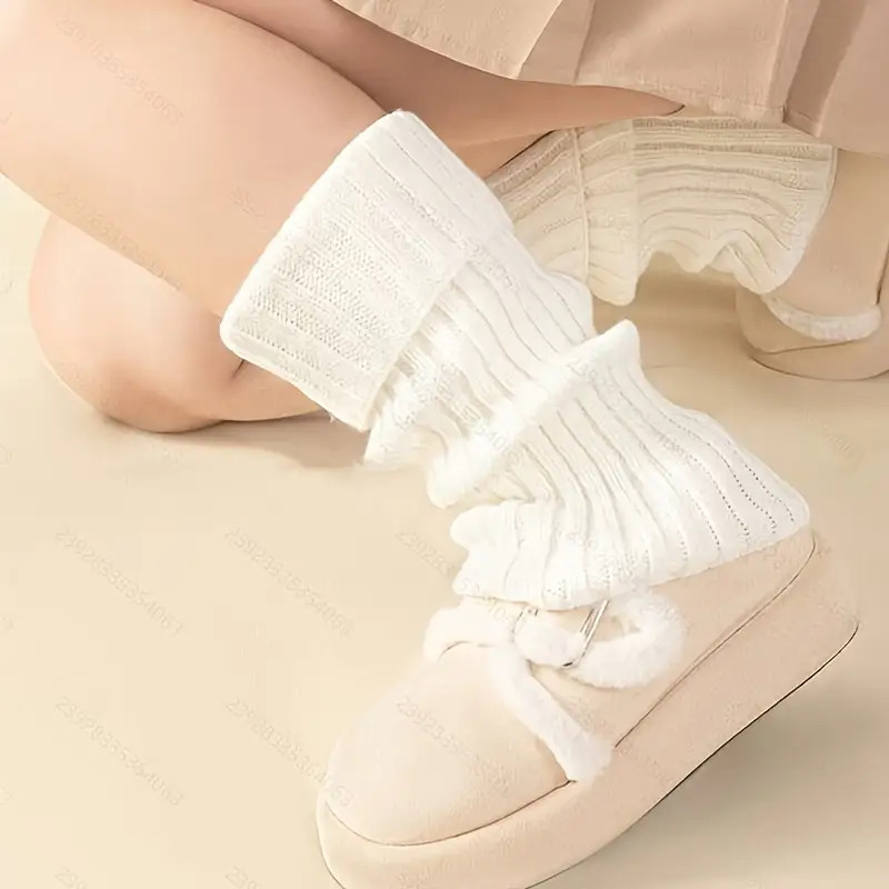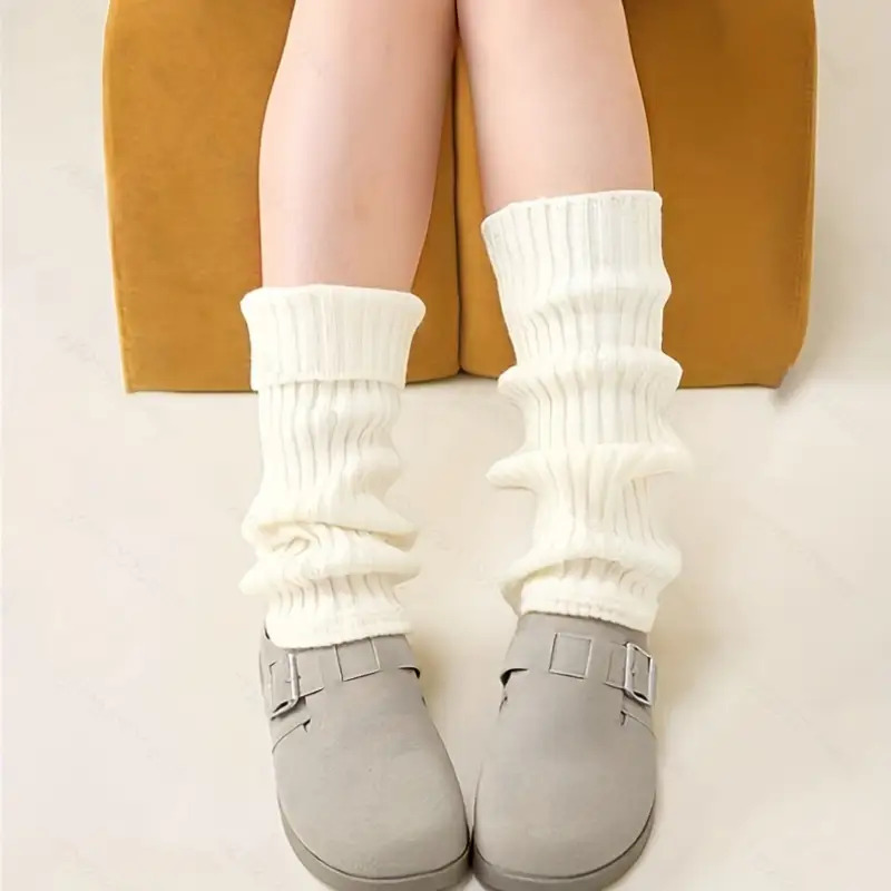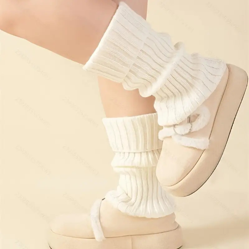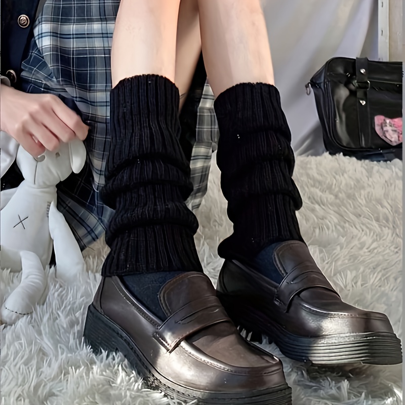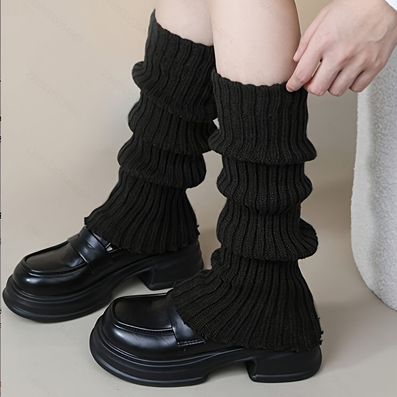 1 Pair Women'S Thermal Leg Warmers - Solid Color Winter Leggings with Ruffled Cuff & Thick Insulation, Soft Stretchy Fabric for JK Uniforms, Fashion Outfits & Casual Attire - Hand Wash/dry Clean, Winter Leggings, Stylish Warm