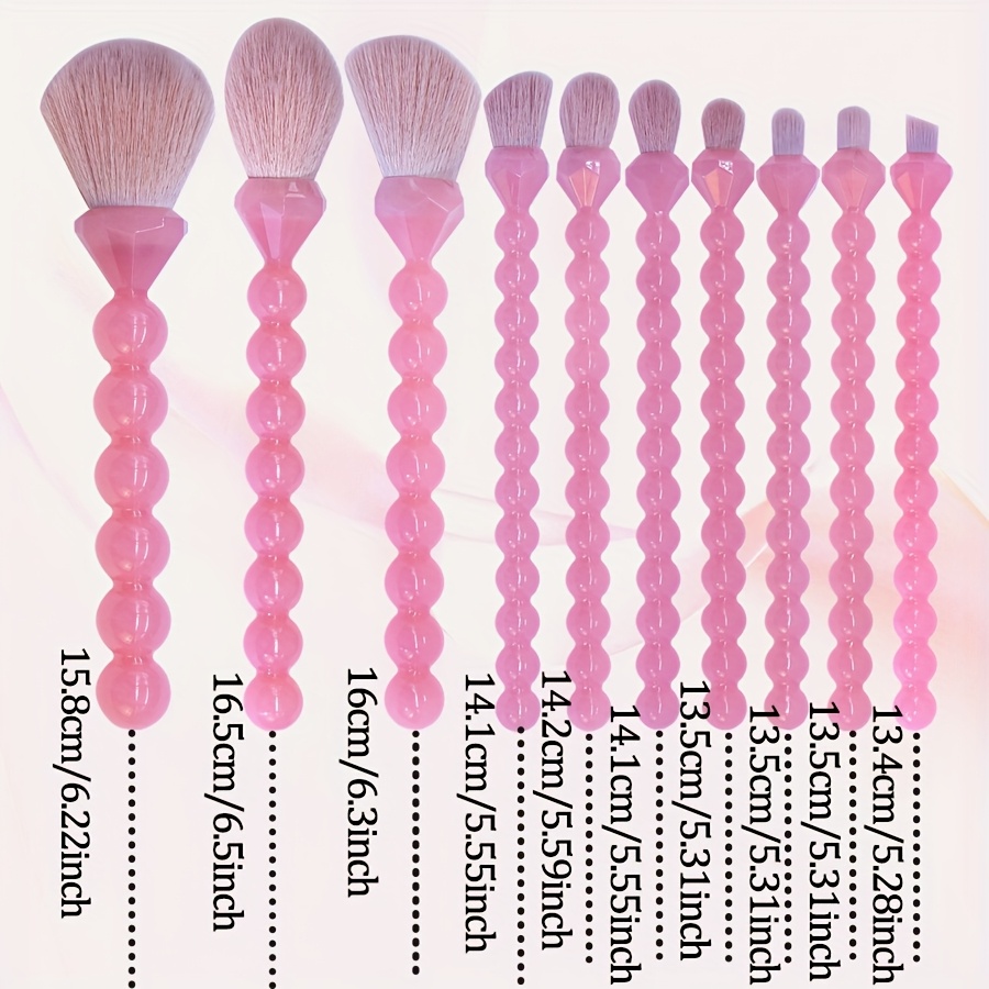 10pcs Pink Pearl Shaped Makeup Brush+3 Powder Puff Full Set Makeup Brushes
