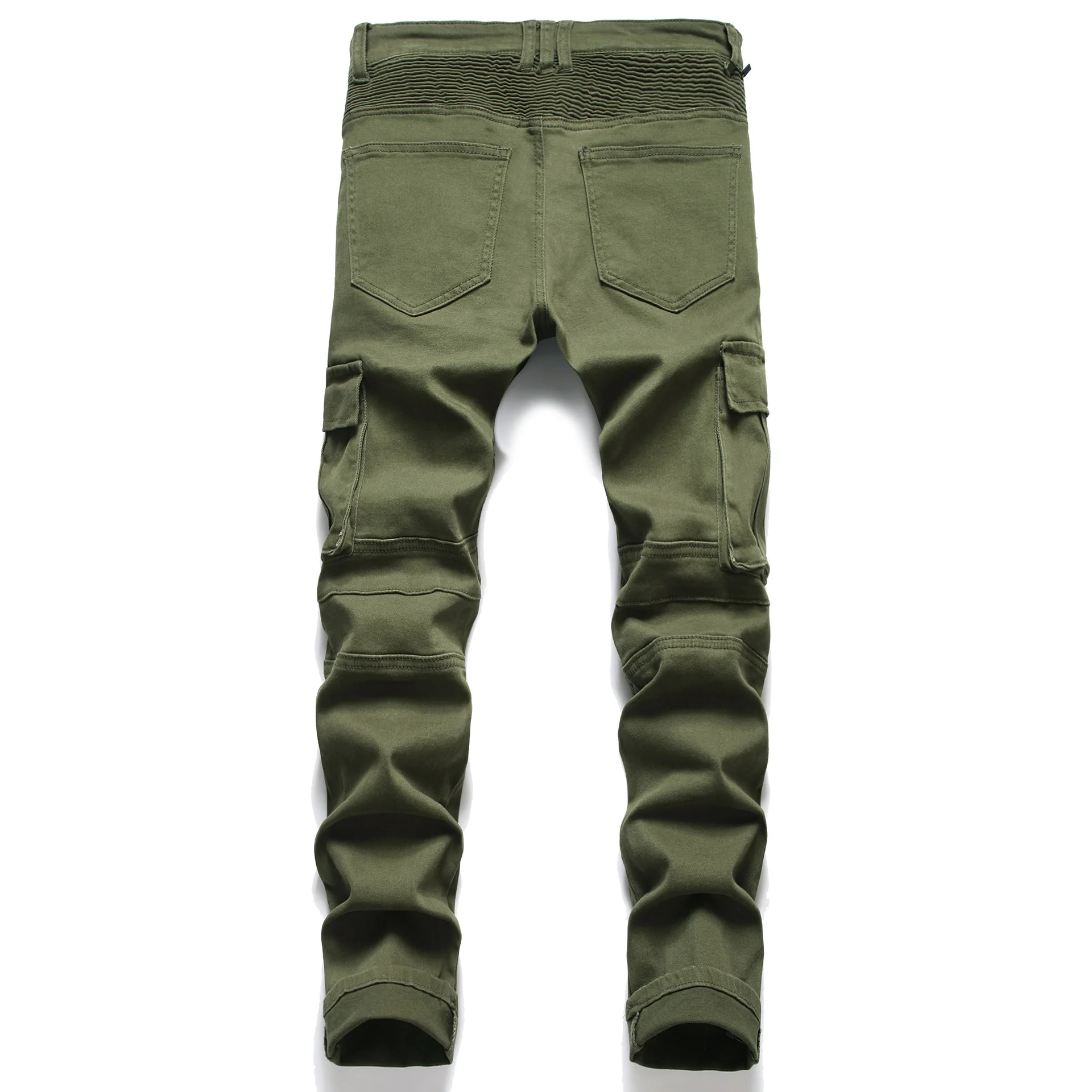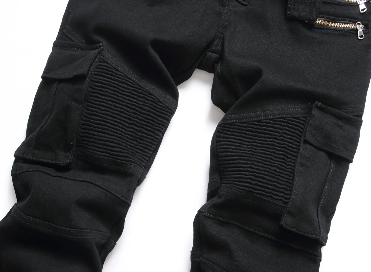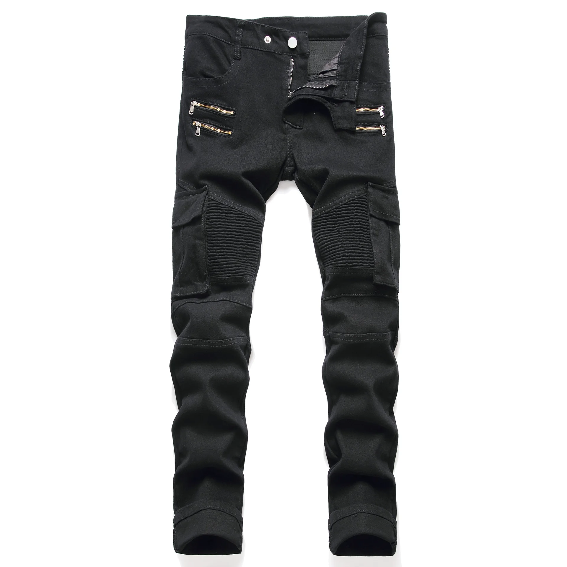New Fashion Mens Biker Jeans Punk Style Men Cargo Denim Pants Zipper Pocket Motorcycle Jeans Male Pantalones Hombre