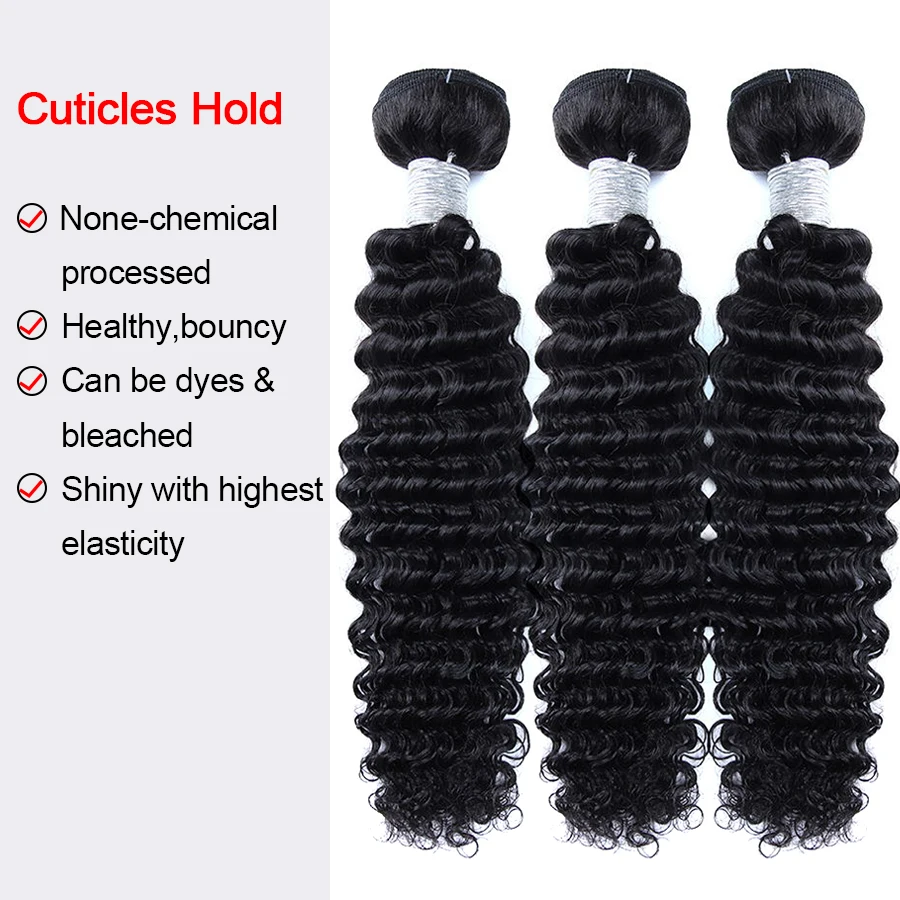 32 inch HD Lace Frontal With Bundles Deep Wave Human Hair 5x5/6x6/13x4/13x6 Brazilian Remy Hair Melt Skins Hair Weave Extension