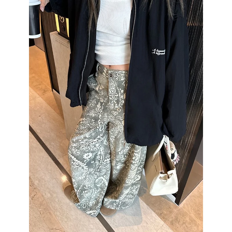 Retro Cashew Flower Printed Jeans