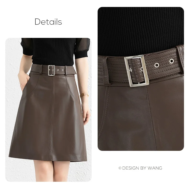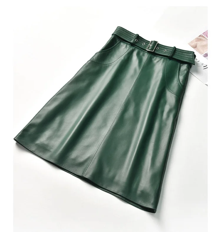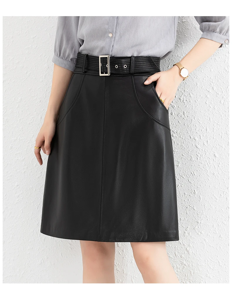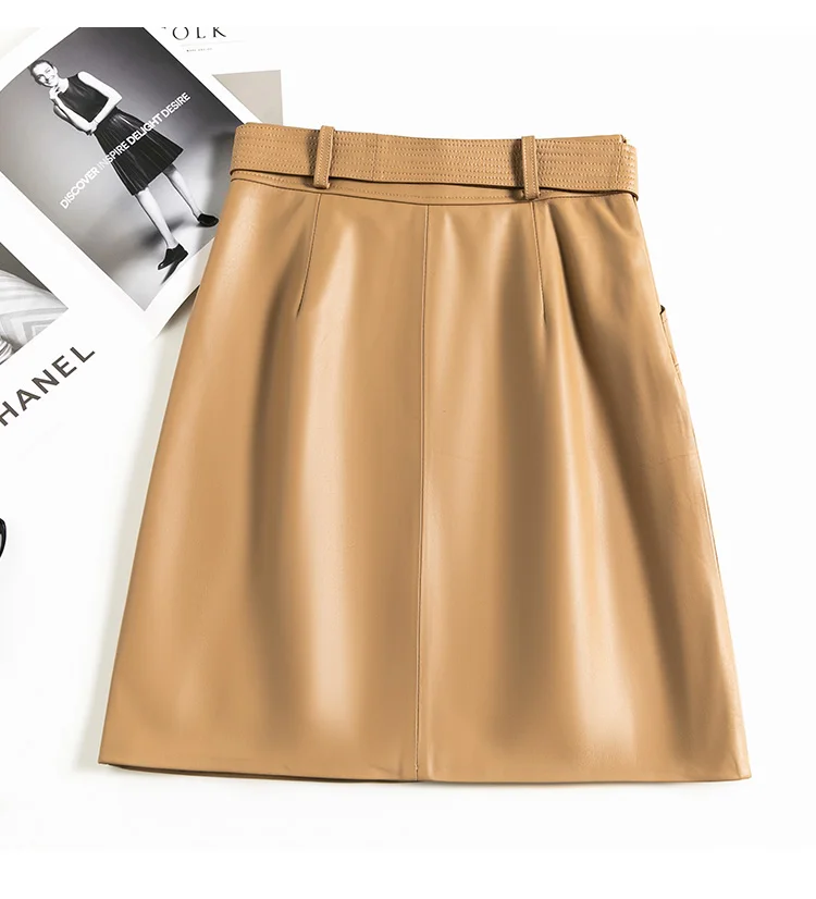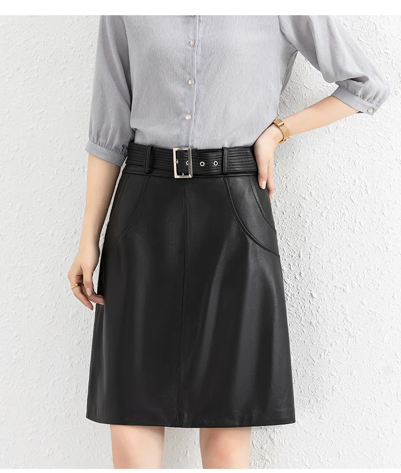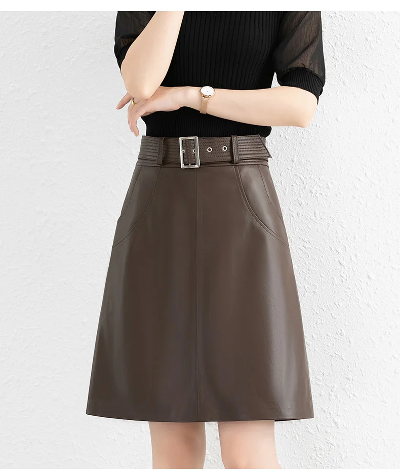 Clothes For Women 2025 Genuine Leather Skirt Female A-line Pockets
