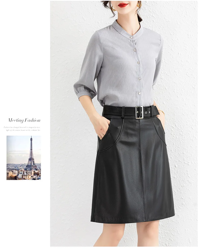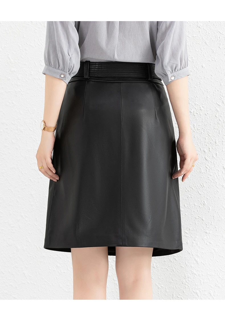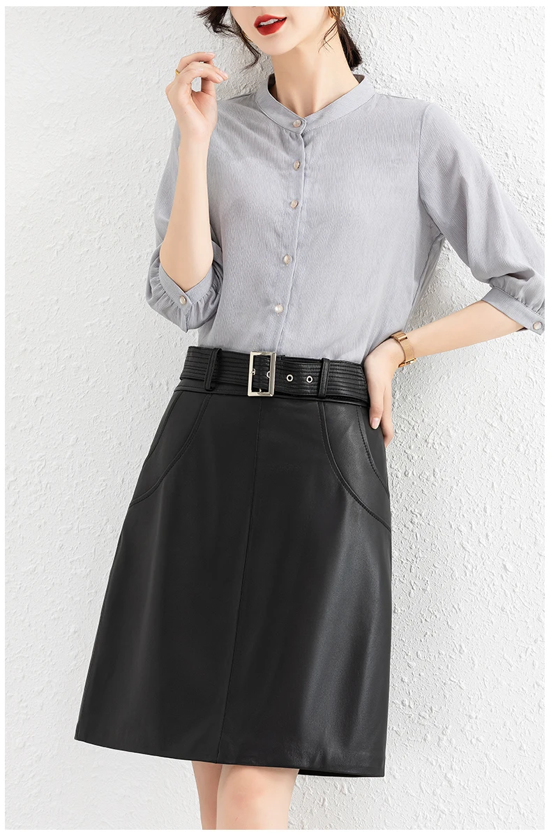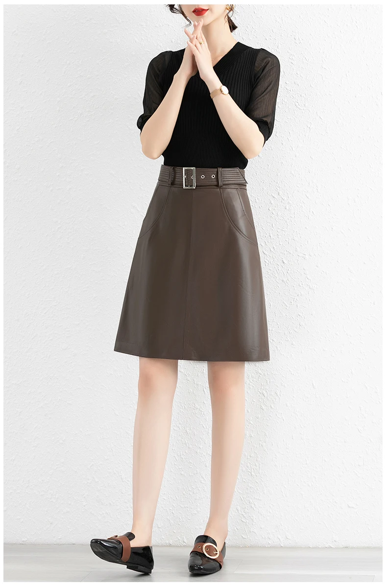 Clothes For Women 2025 Genuine Leather Skirt Female A-line Pockets