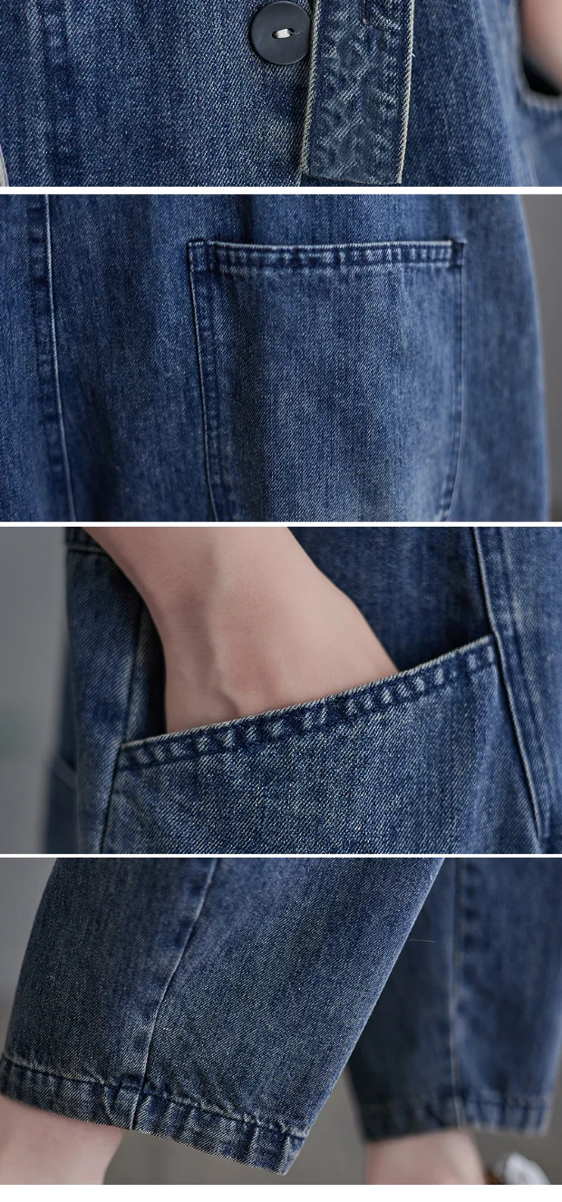 The loose fit of these overalls provides comfort and ease of movement, making them ideal for daily wear.