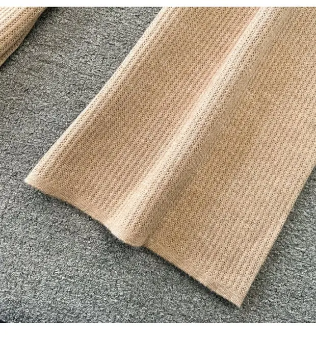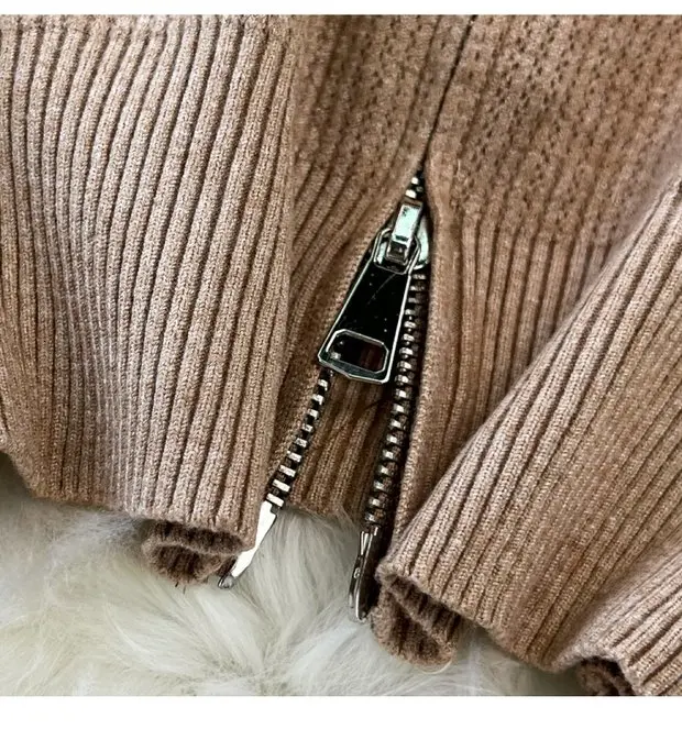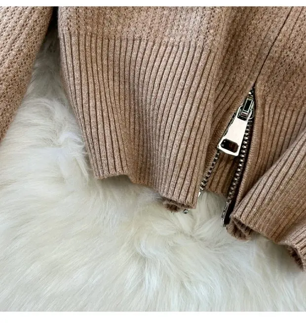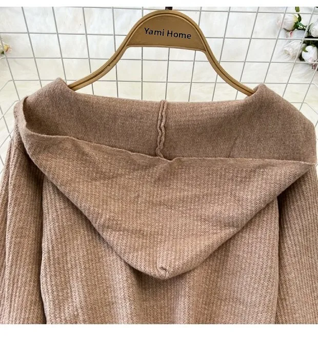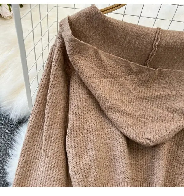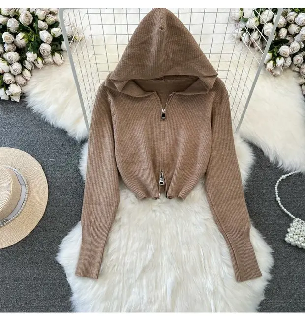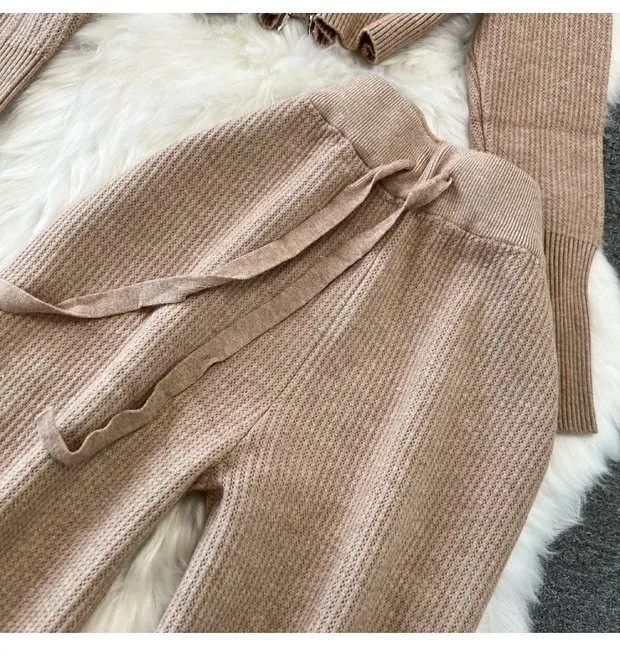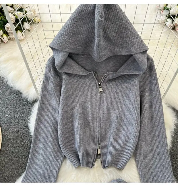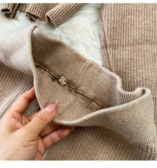 Zipper Hooded Slim Fit Knitted Sweatshirt Set