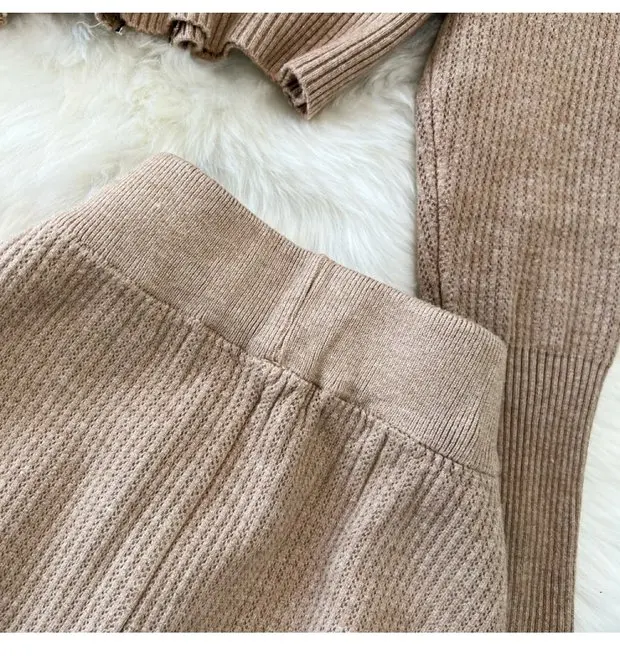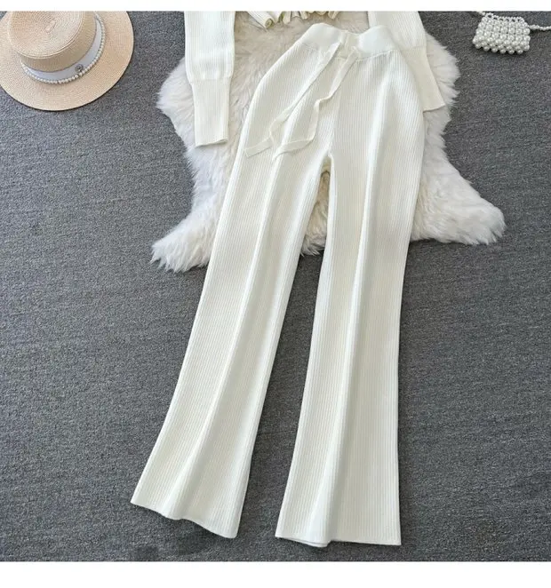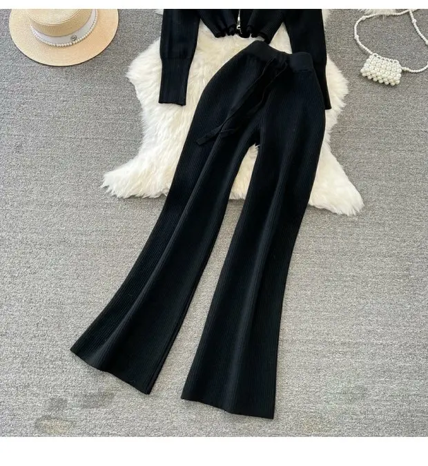 Accompanied by high waist wide leg pants, this set ensures a comfortable fit while maintaining a stylish edge.