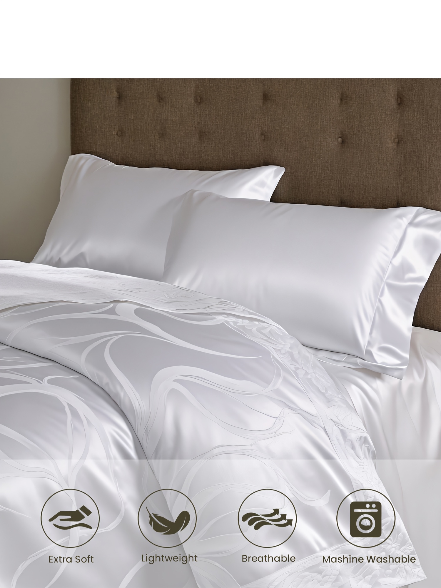 {3pcs} Golden/white Luxury Satin Jacquard Comforter Set