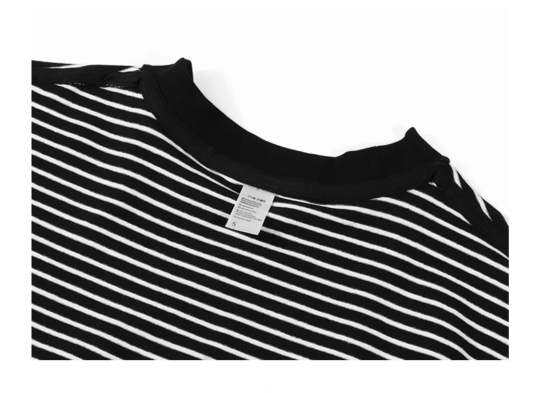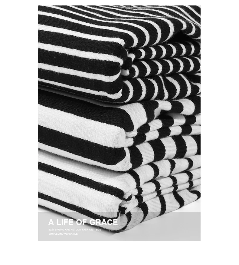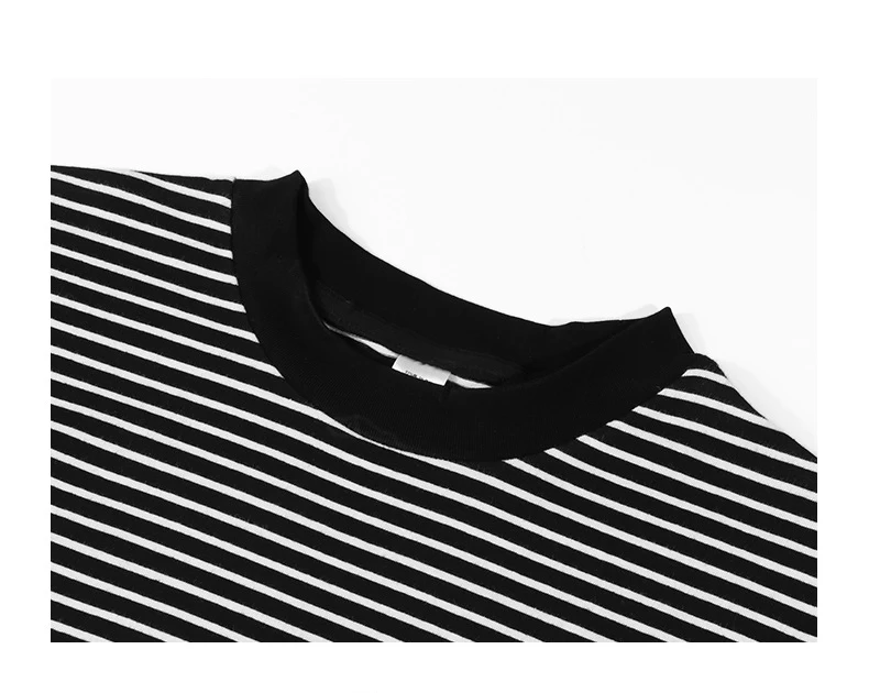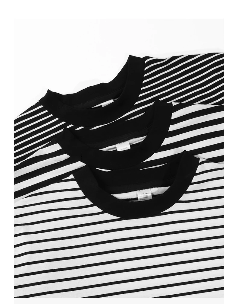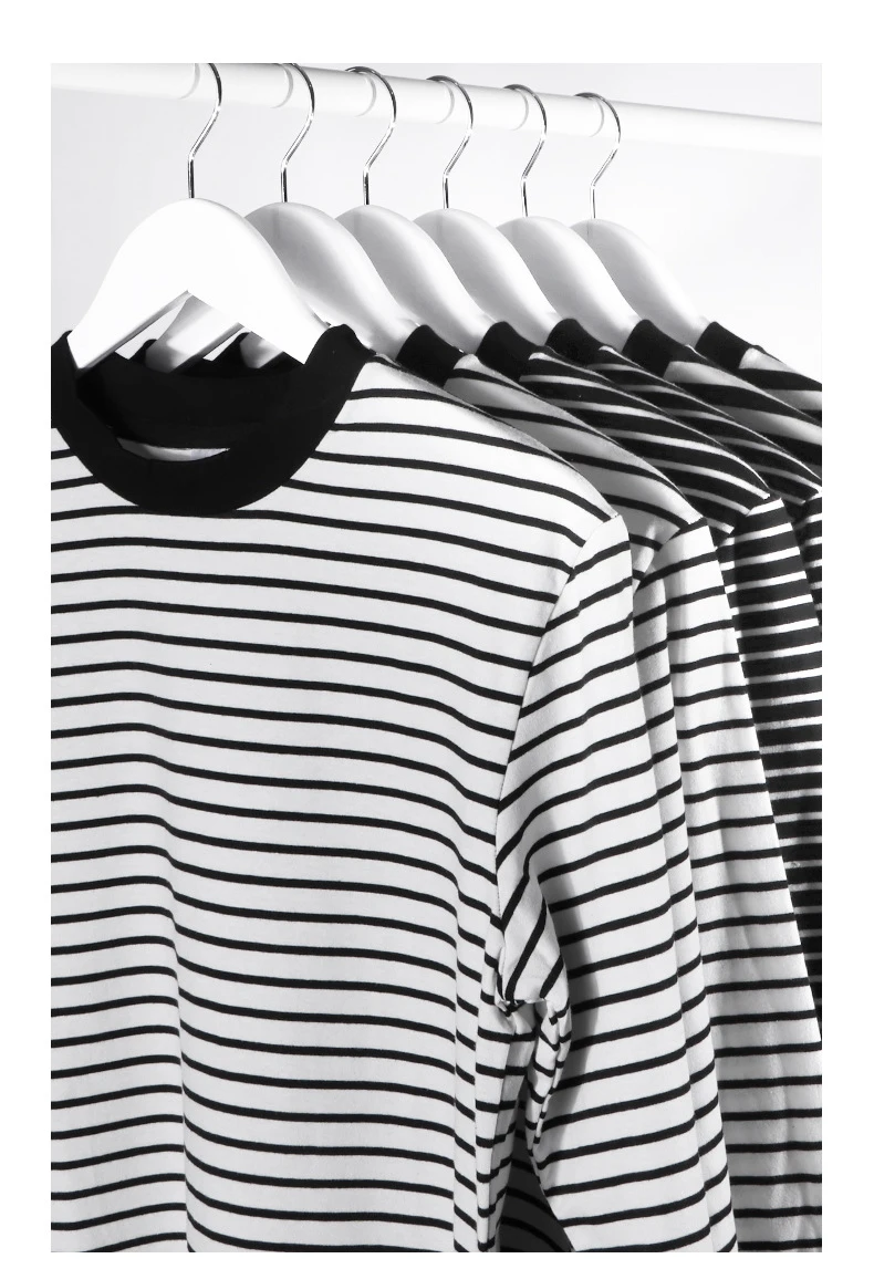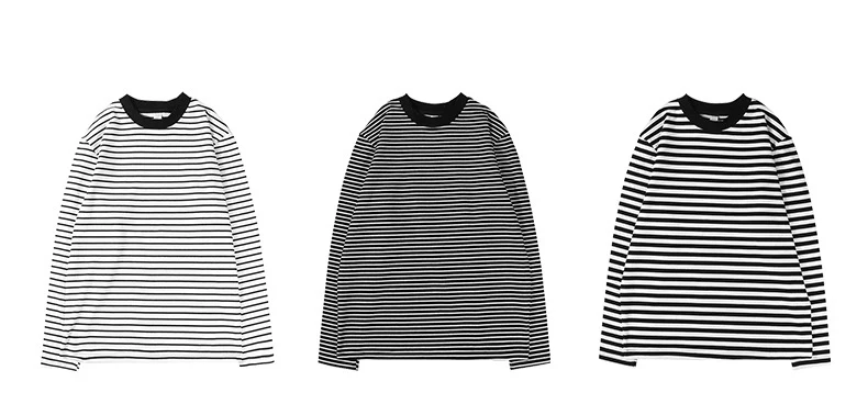 Gyn-Tw003 Heavy Weight Men Black White Striped t-Shirt Casual Simple Classic o-Neck Thicken Cotton Daily Long Sleeve Couple Tees LFFMHMT