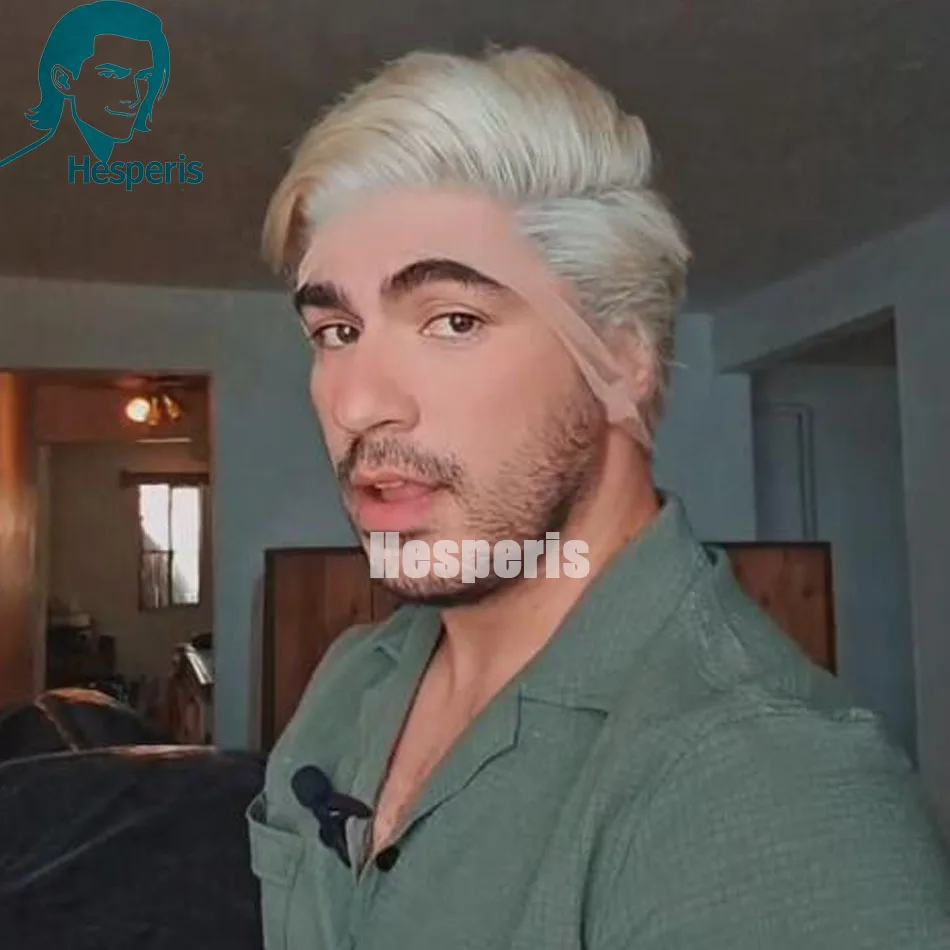 Hesperis Blonde Human Hair Full Lace Wigs Pre Plucked Pixie Cut Short Wig For Men Pre-Cut and Styled Brazilian Remy Male Wigs
