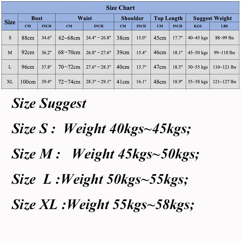 Size XL --Weight 55~58kgs ;