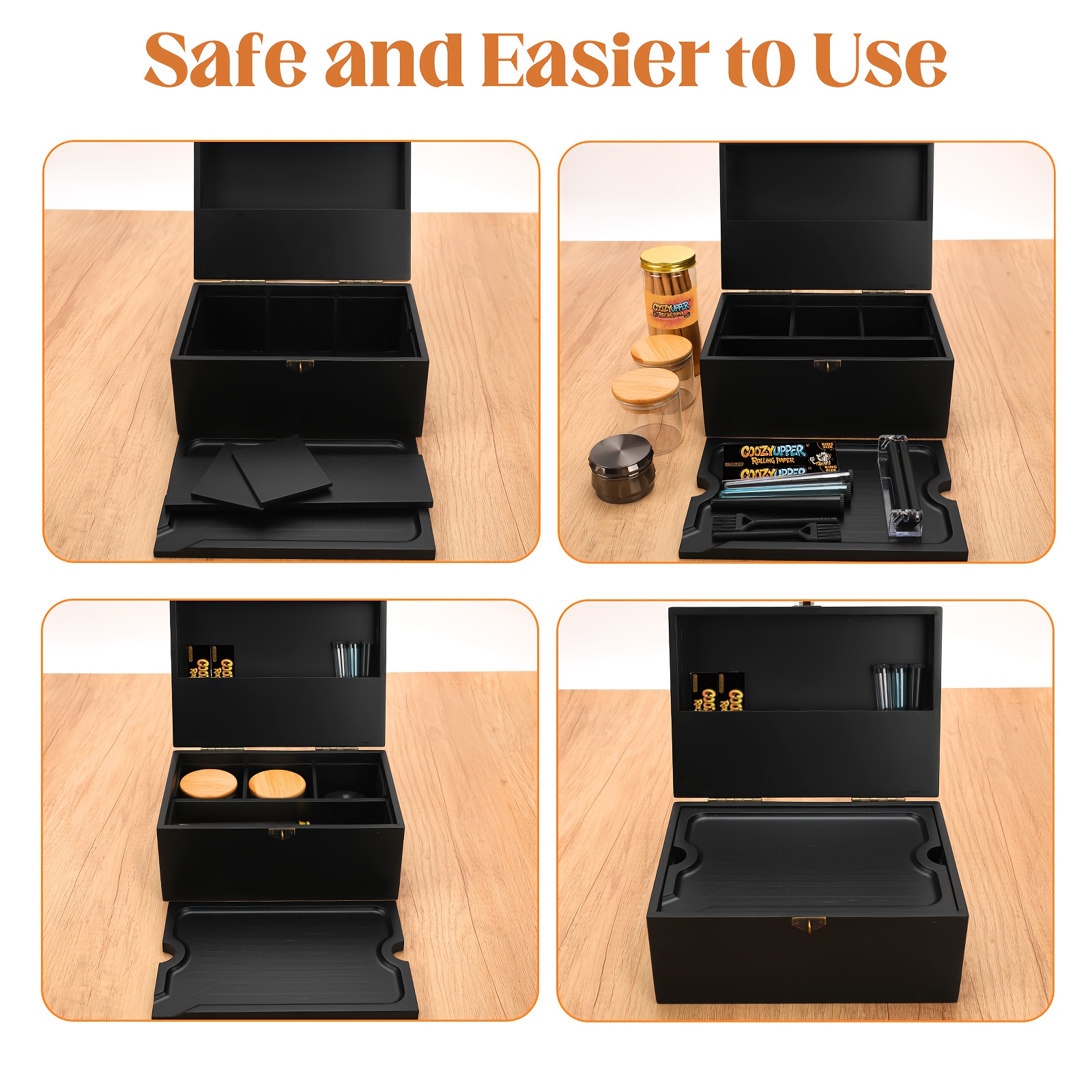 Large Bamboo Stash Box with Removable Tray Kit