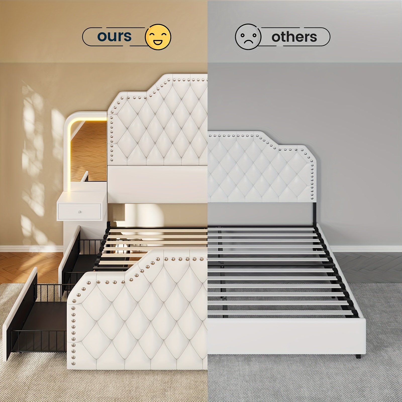 Queen Bed Frame with 2 Nightstands & Mirrors