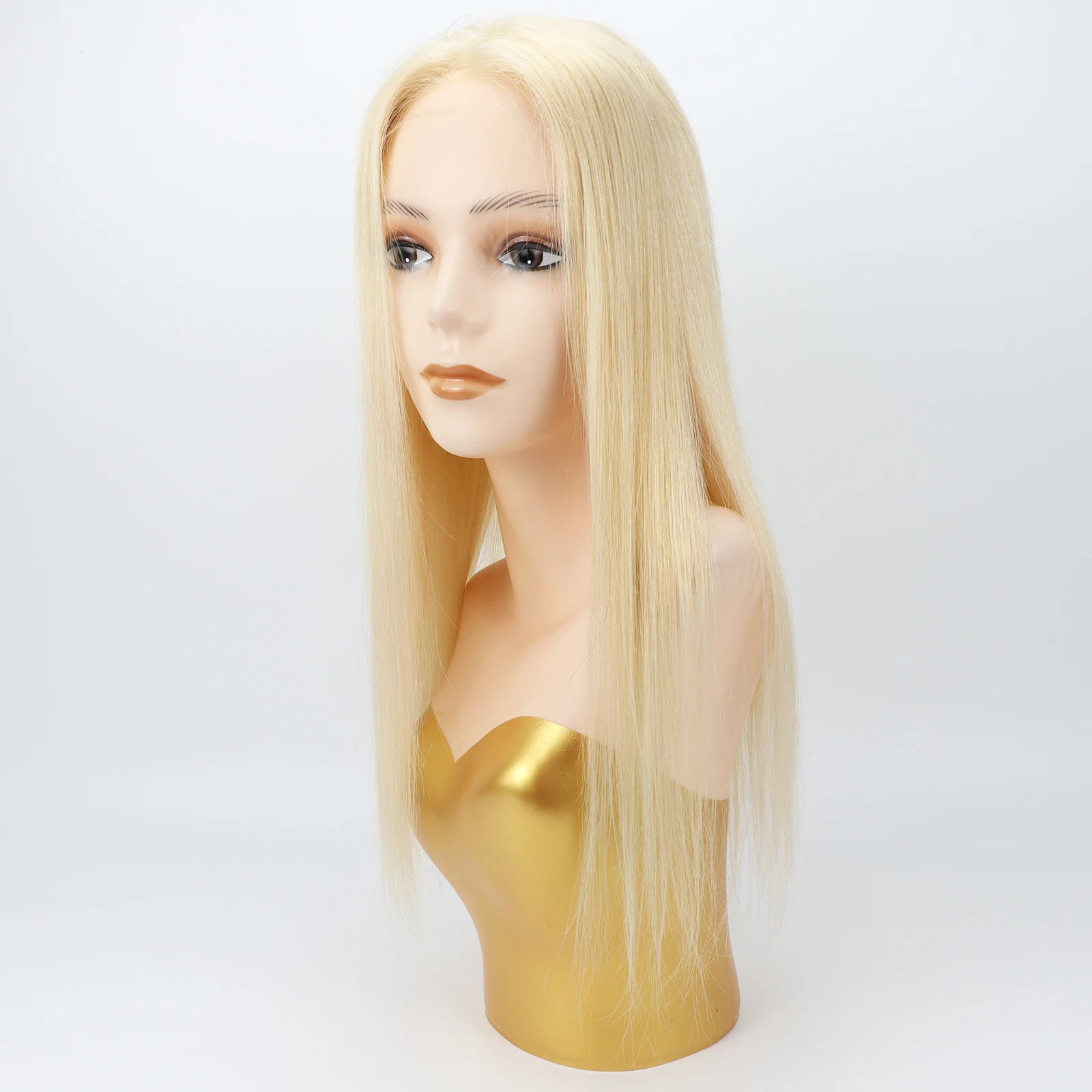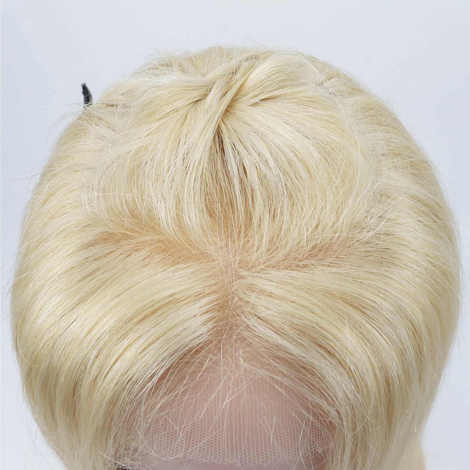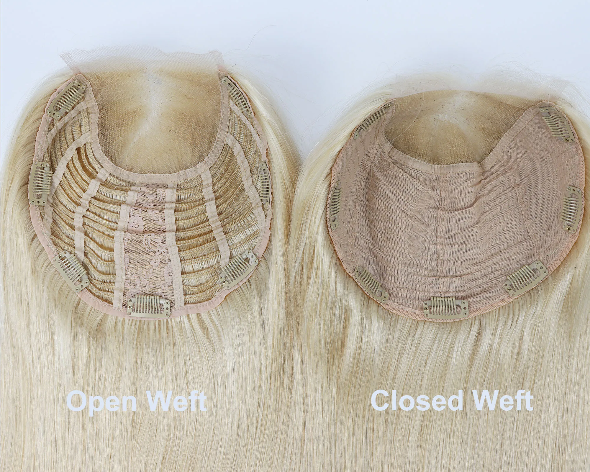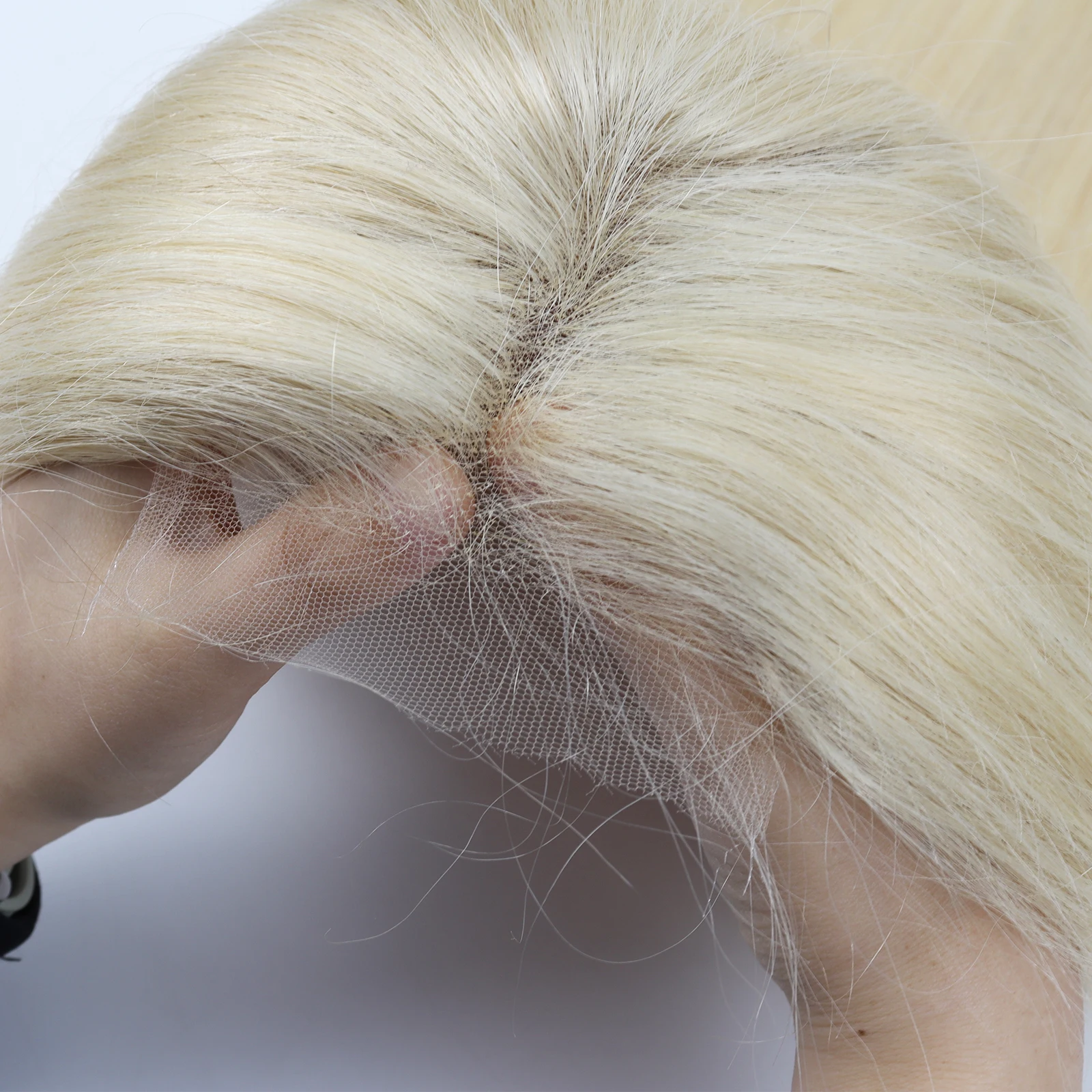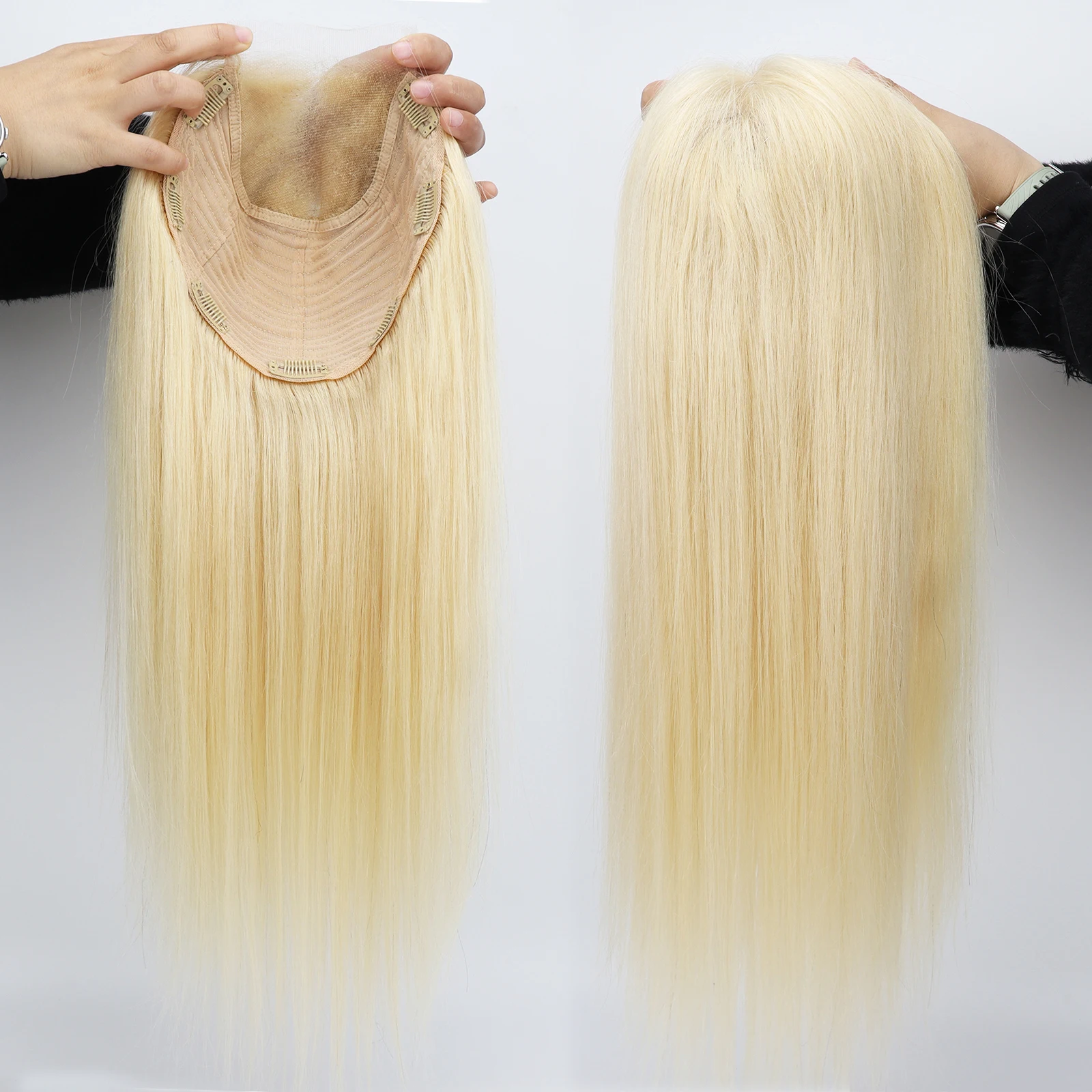 Real Remy Human Hair Topper with Closed Weft 7x7inch Lace Top Hairpieces for Women #613 Light Blonde Soft Breathable Open Weft