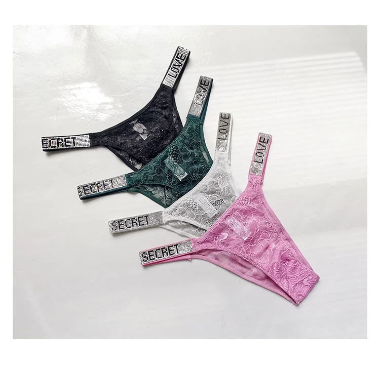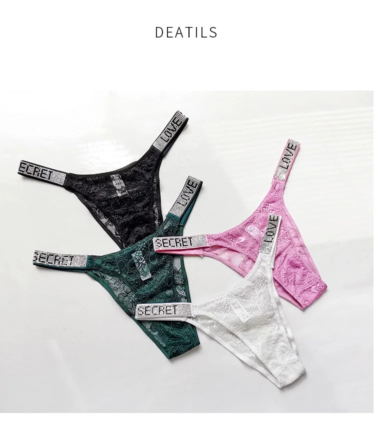 Rhinestone Lace Letter Panty