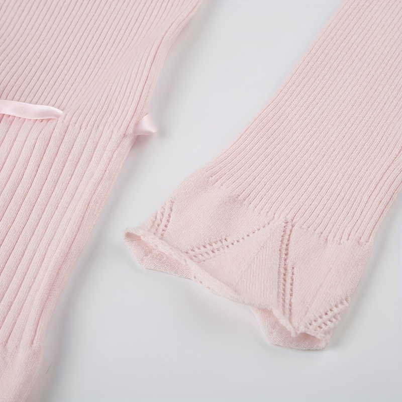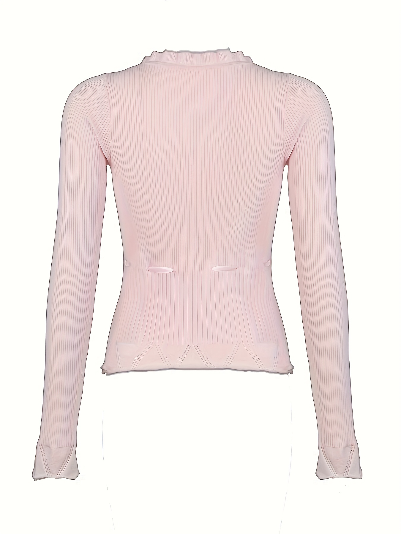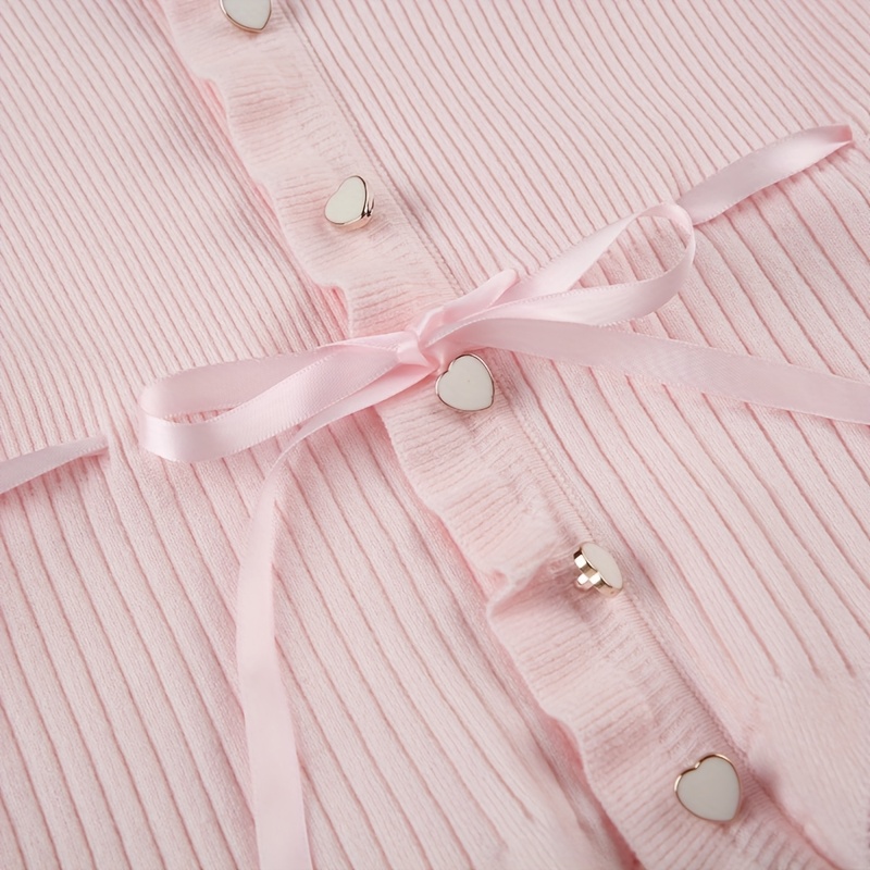 V-Neck Top with Contrast Lace Trim & Bow Detail