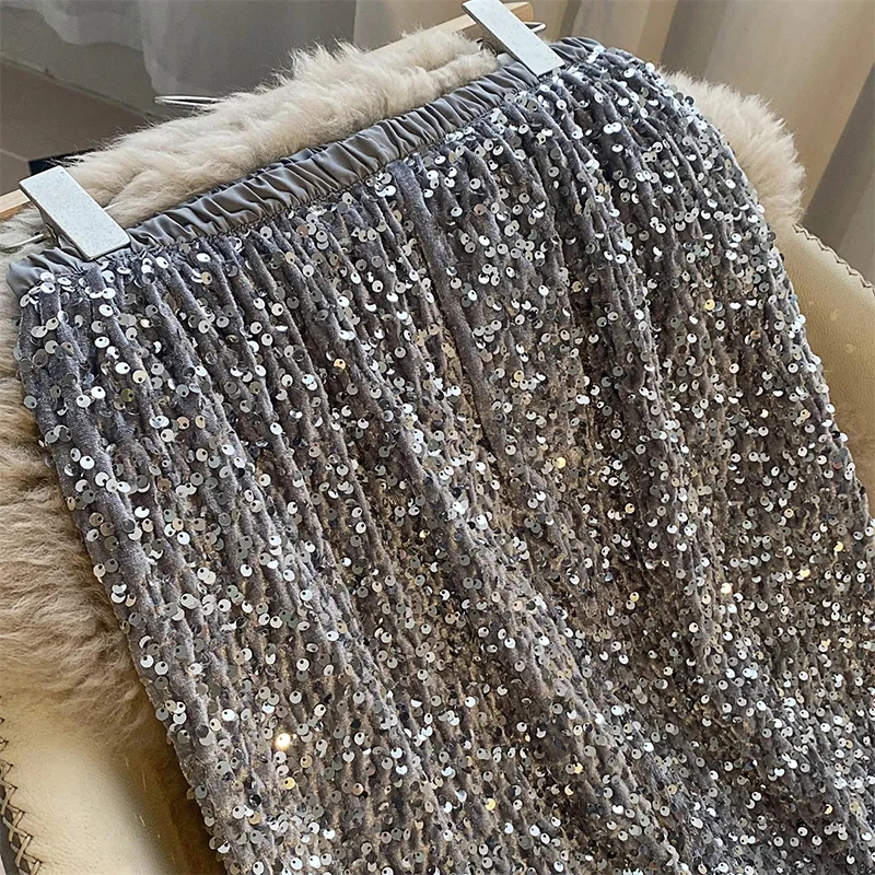 Sequin Decorate Midi Skirt