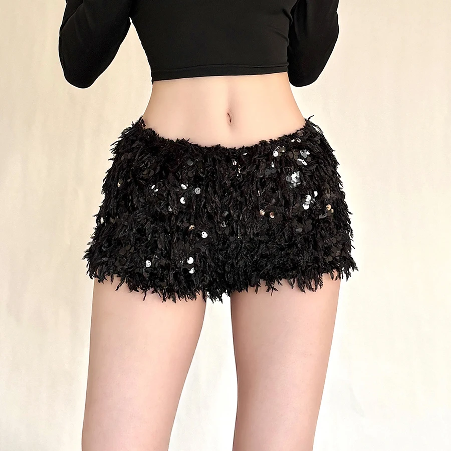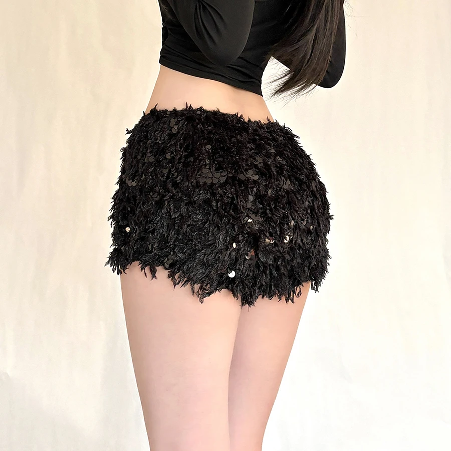 Furry Tassel Mini Shorts