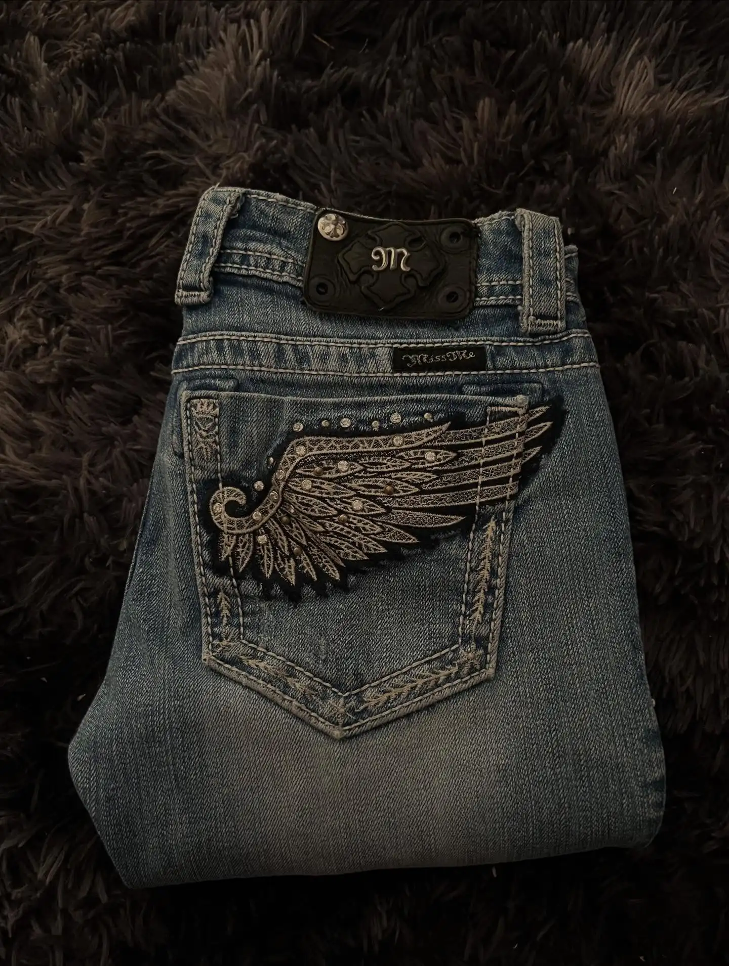 Wings Embroidered High-Waist Jeans