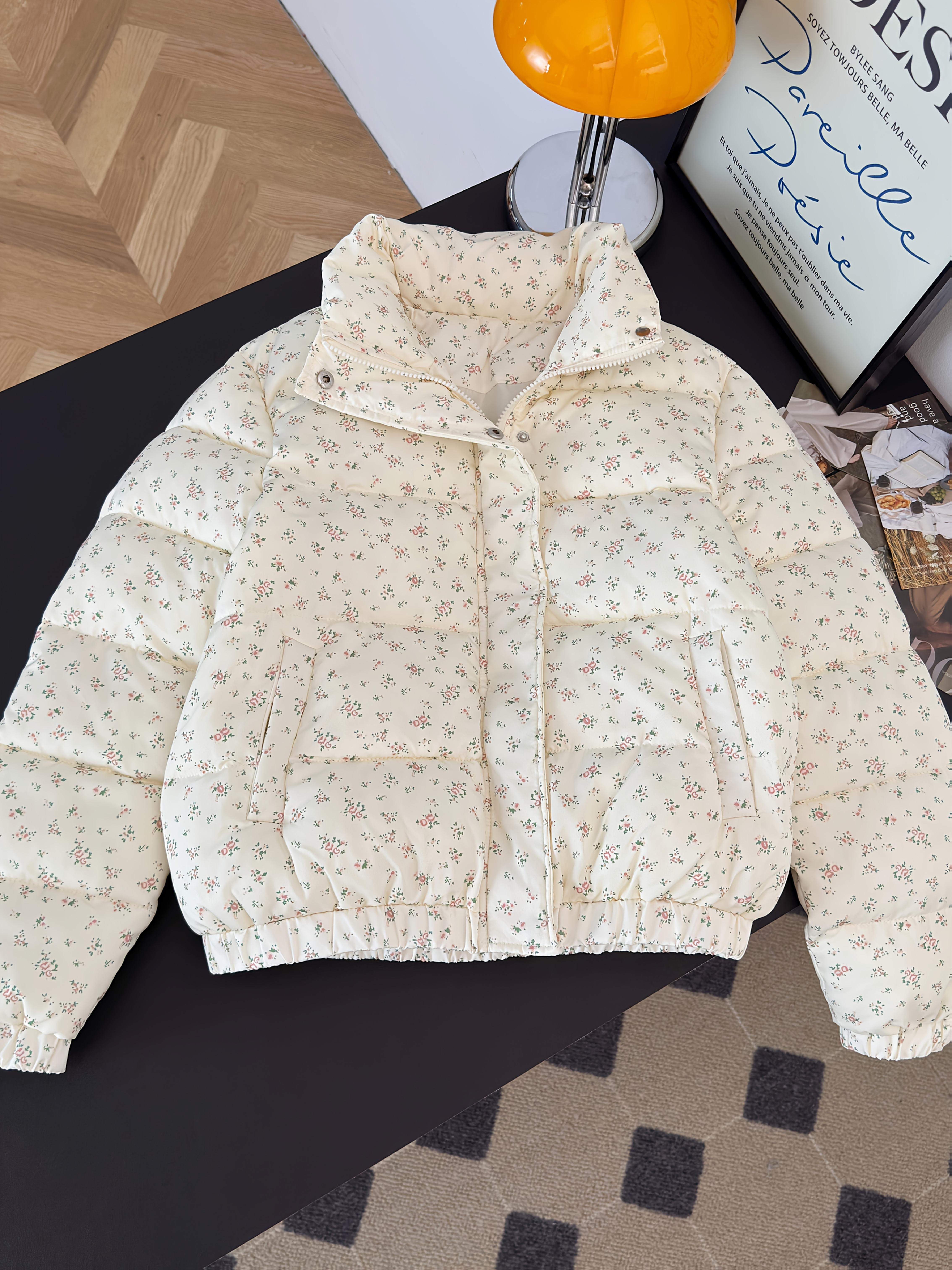 Women'S Cozy Fleece-Lined Zip-Up Jacket with Elastic Cuffs - Chic Floral Pattern, Long Sleeve, Button-Up Front, Perfect for Fall & Winter, Cozy Winter Jacket | Buttonup Front Jacket | Soft Texture Jacket