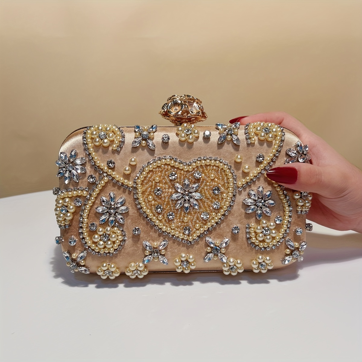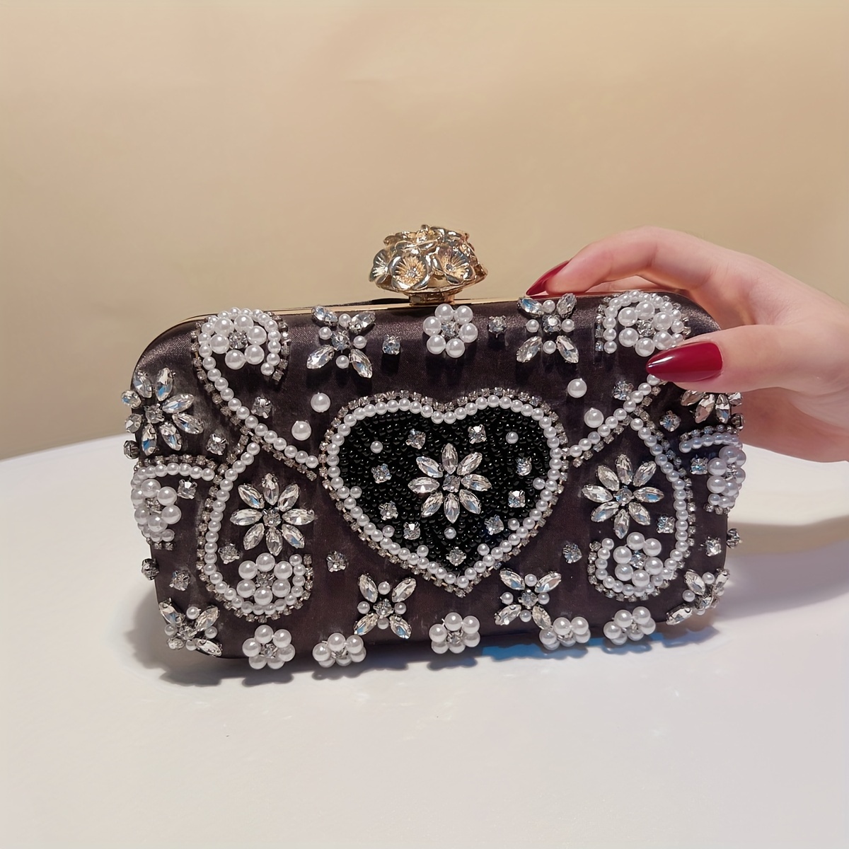 Beaded Clutch Handbag with Detachable Strap