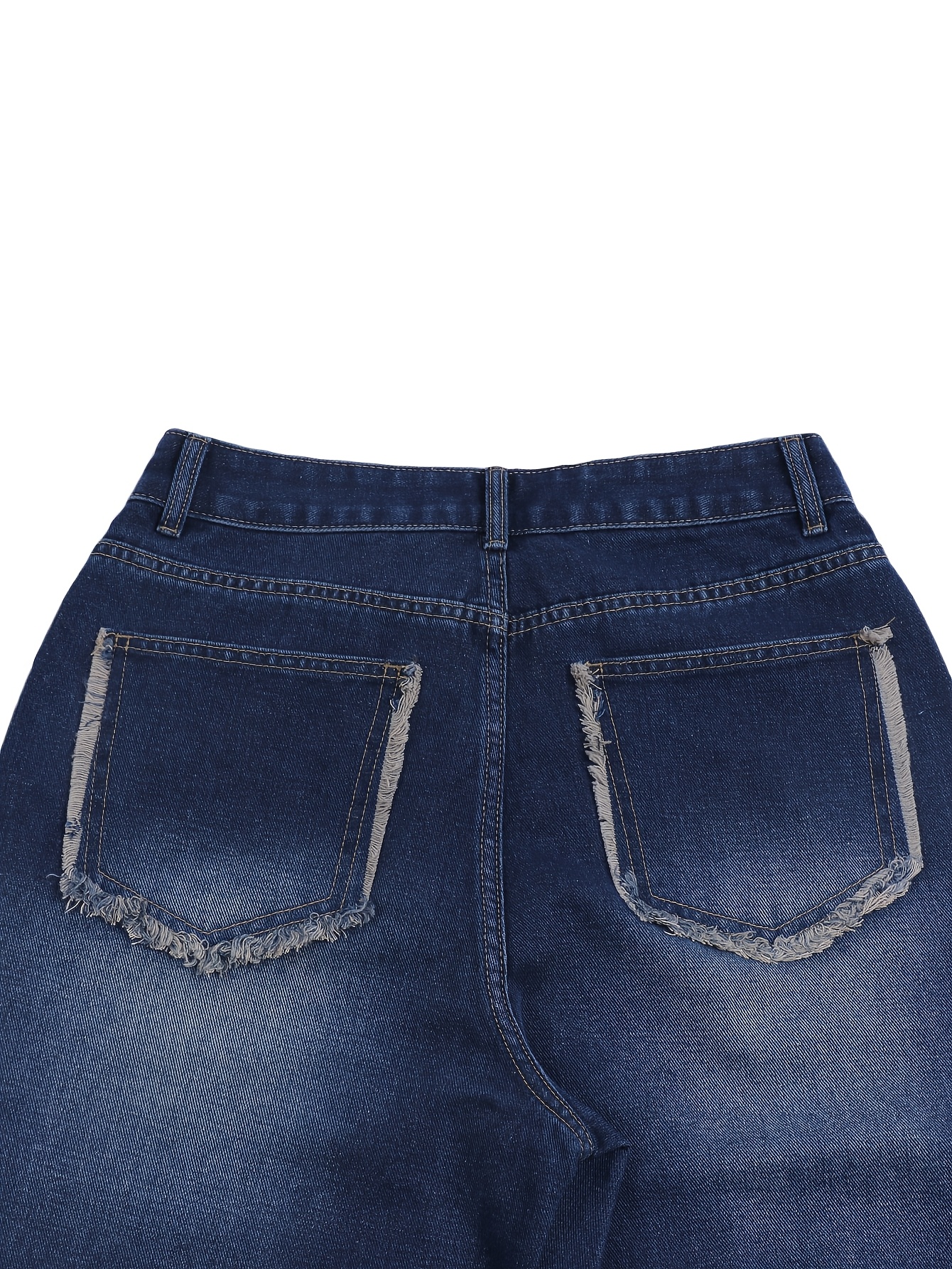 Low-Rise Straight-Leg Jeans with Fur-Like Patchwork Hem