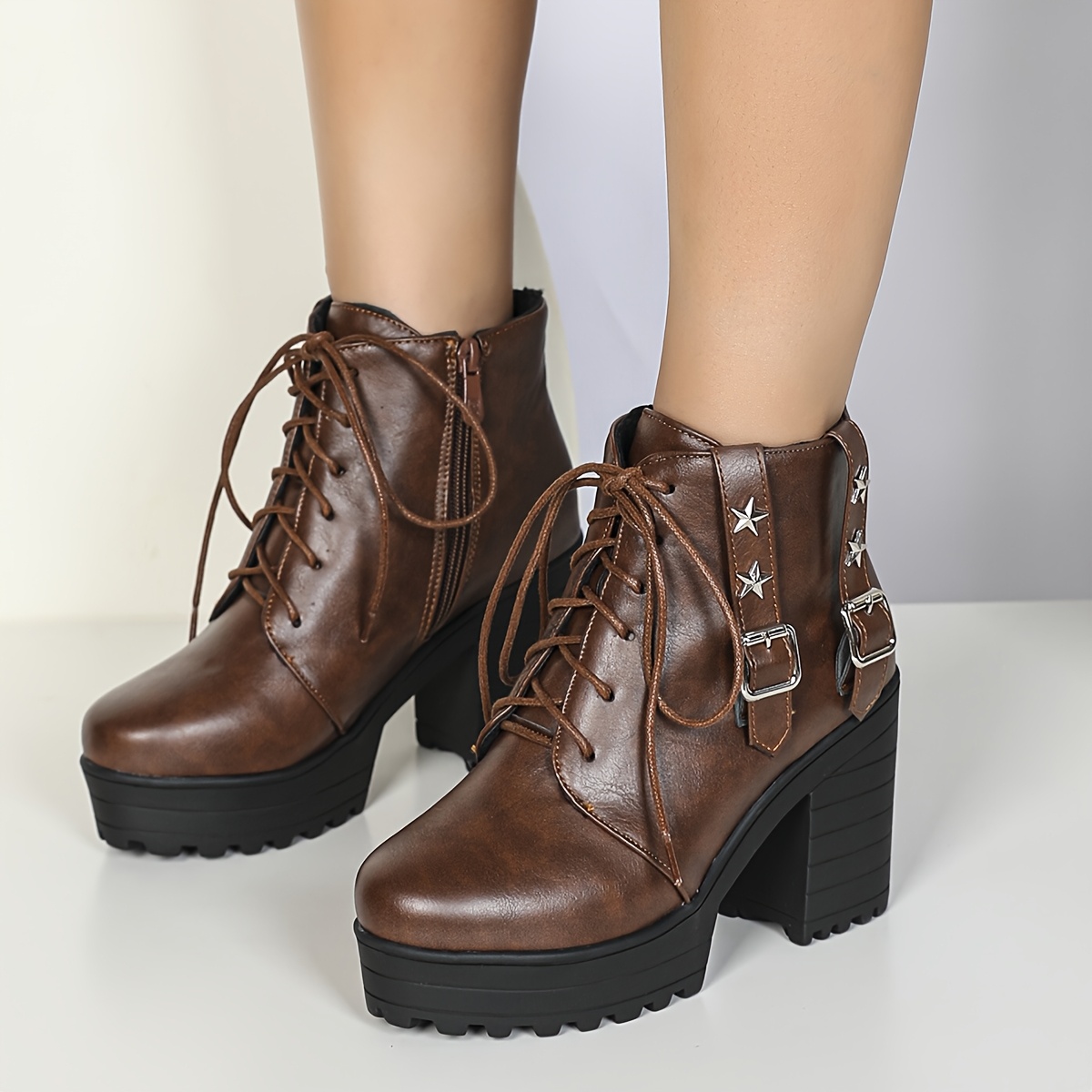 Retro Chunky Platform Ankle Boots