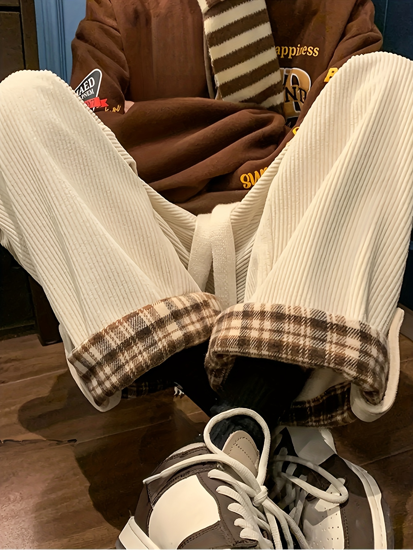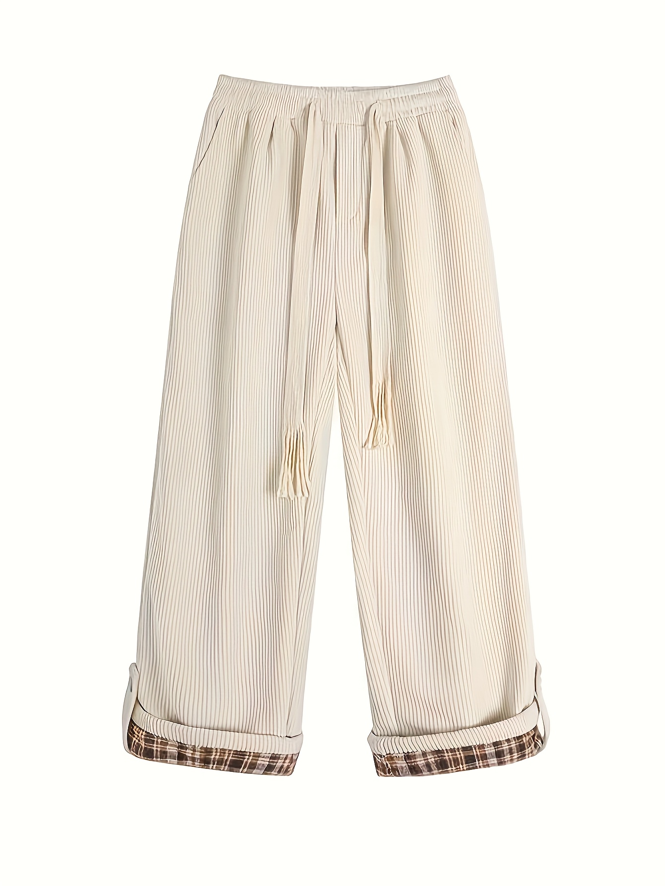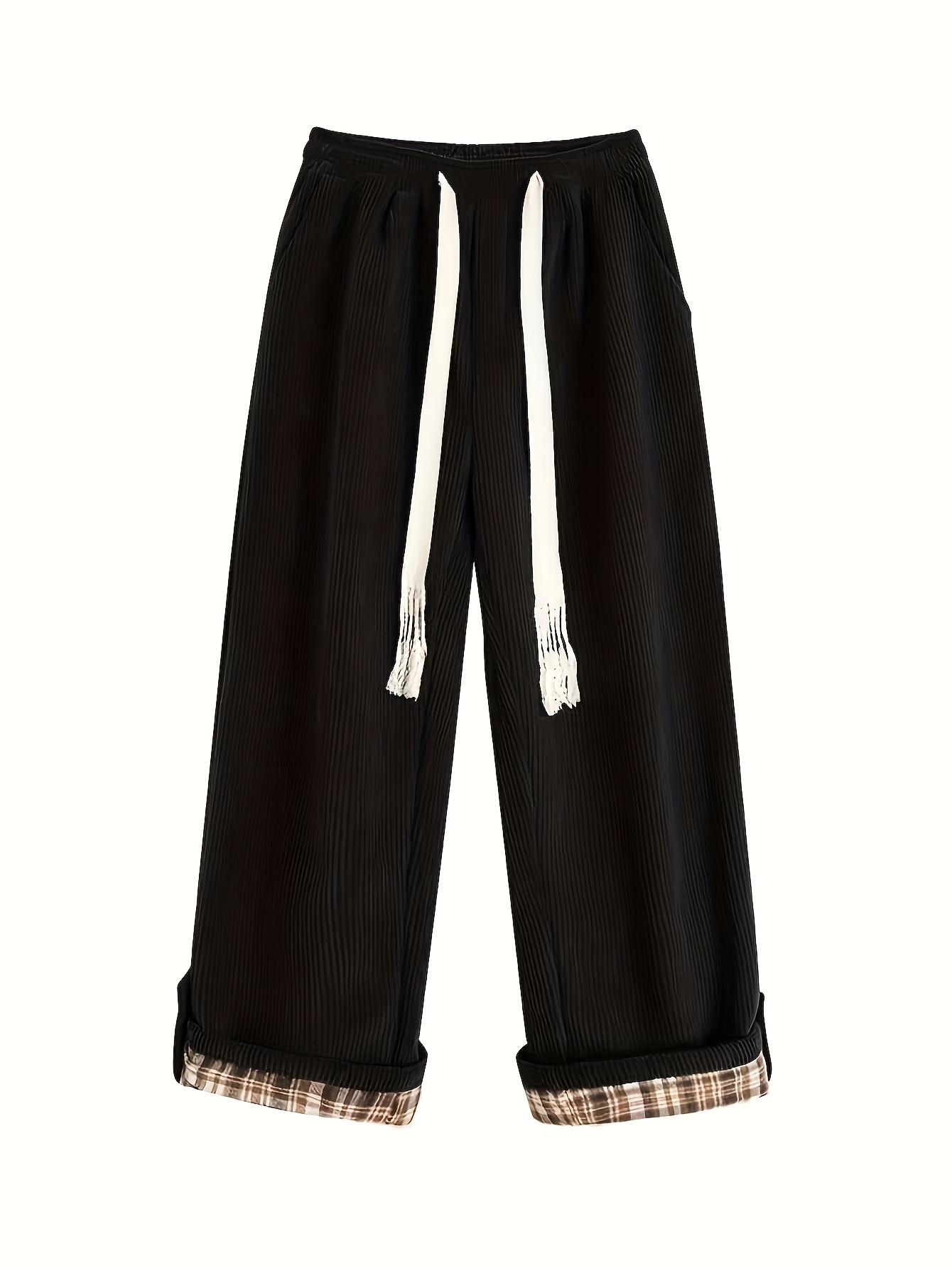 Women's Spring and Autumn Plaid Flared Pants Korean Style Loose Straight Leg Trousers