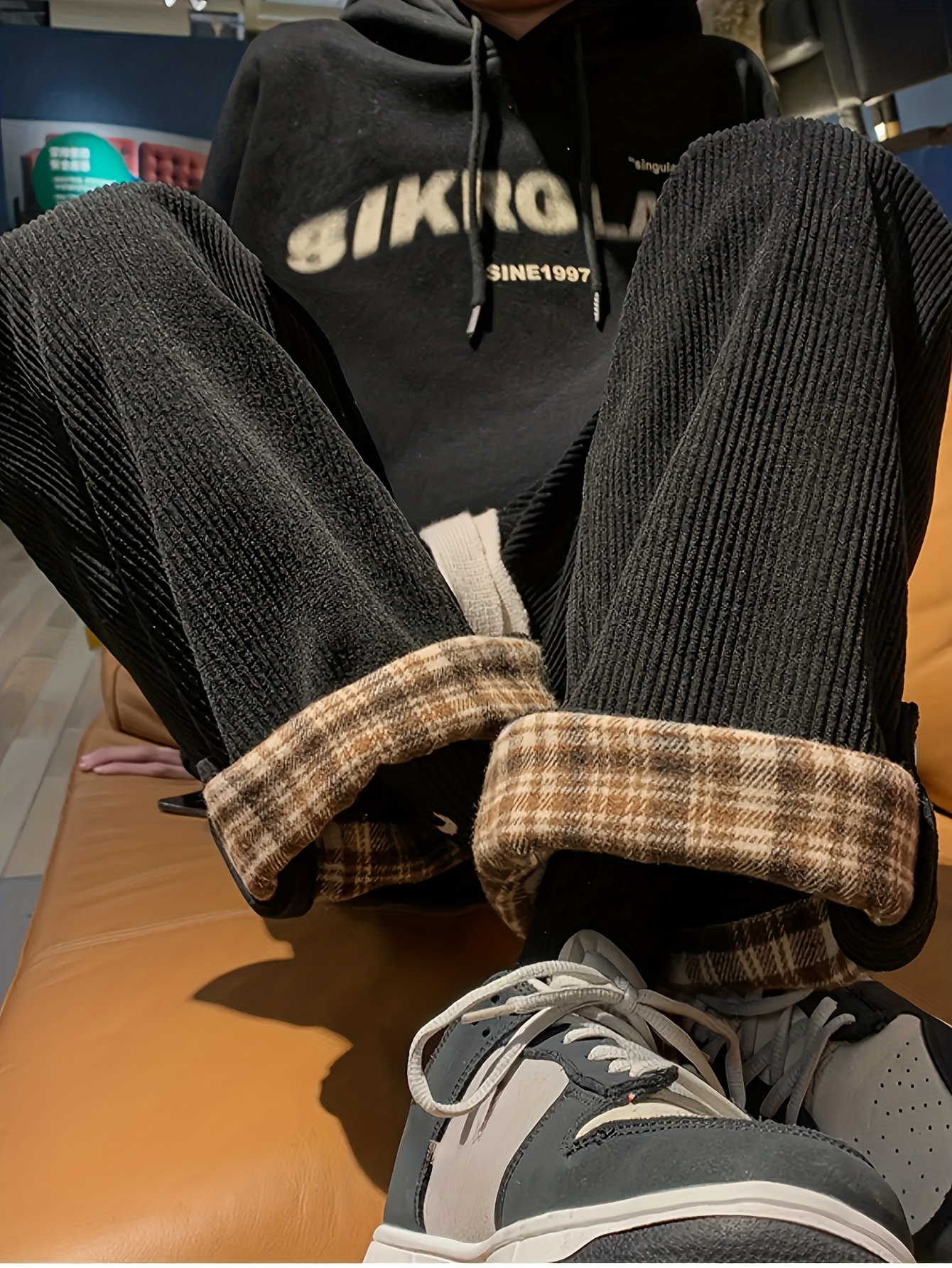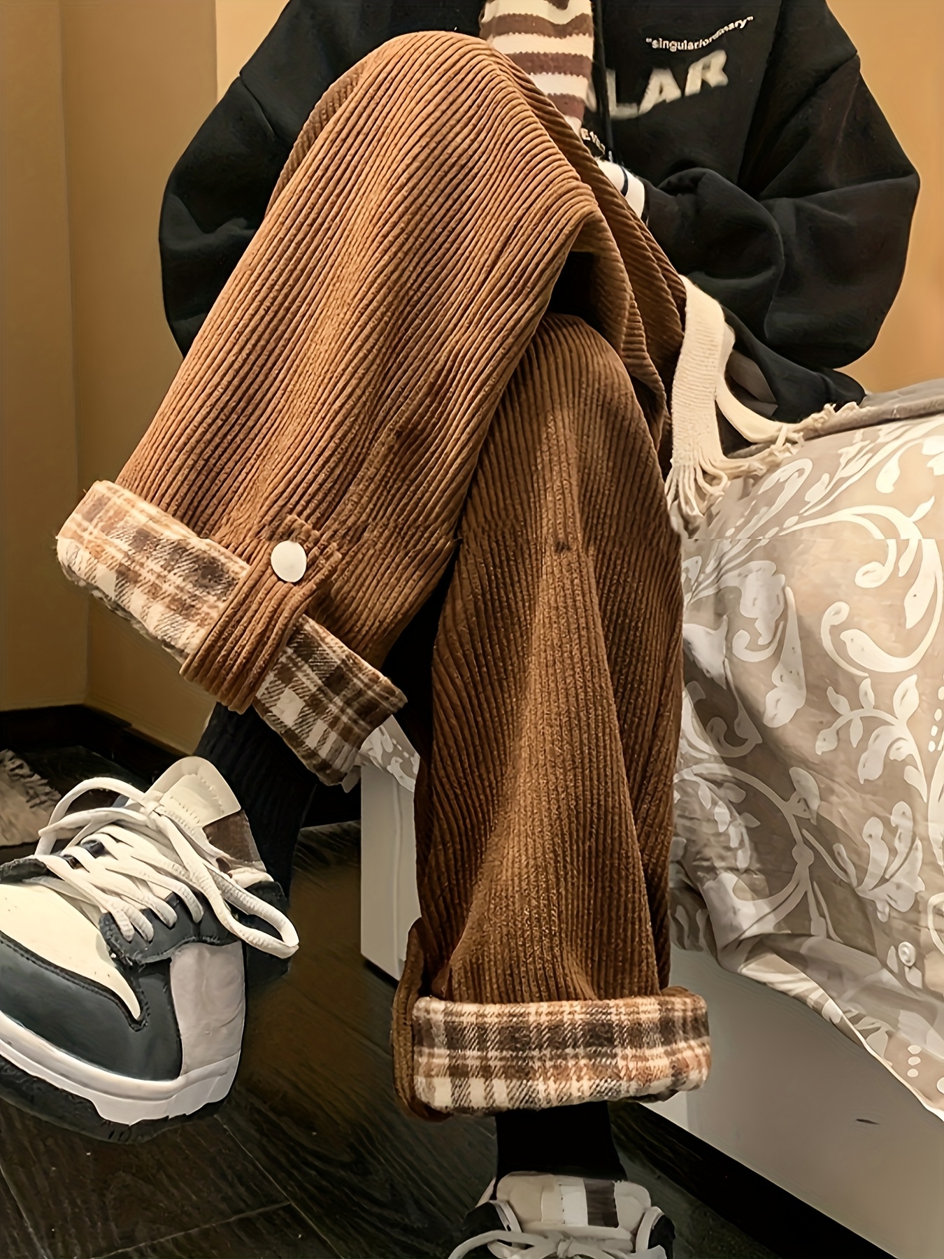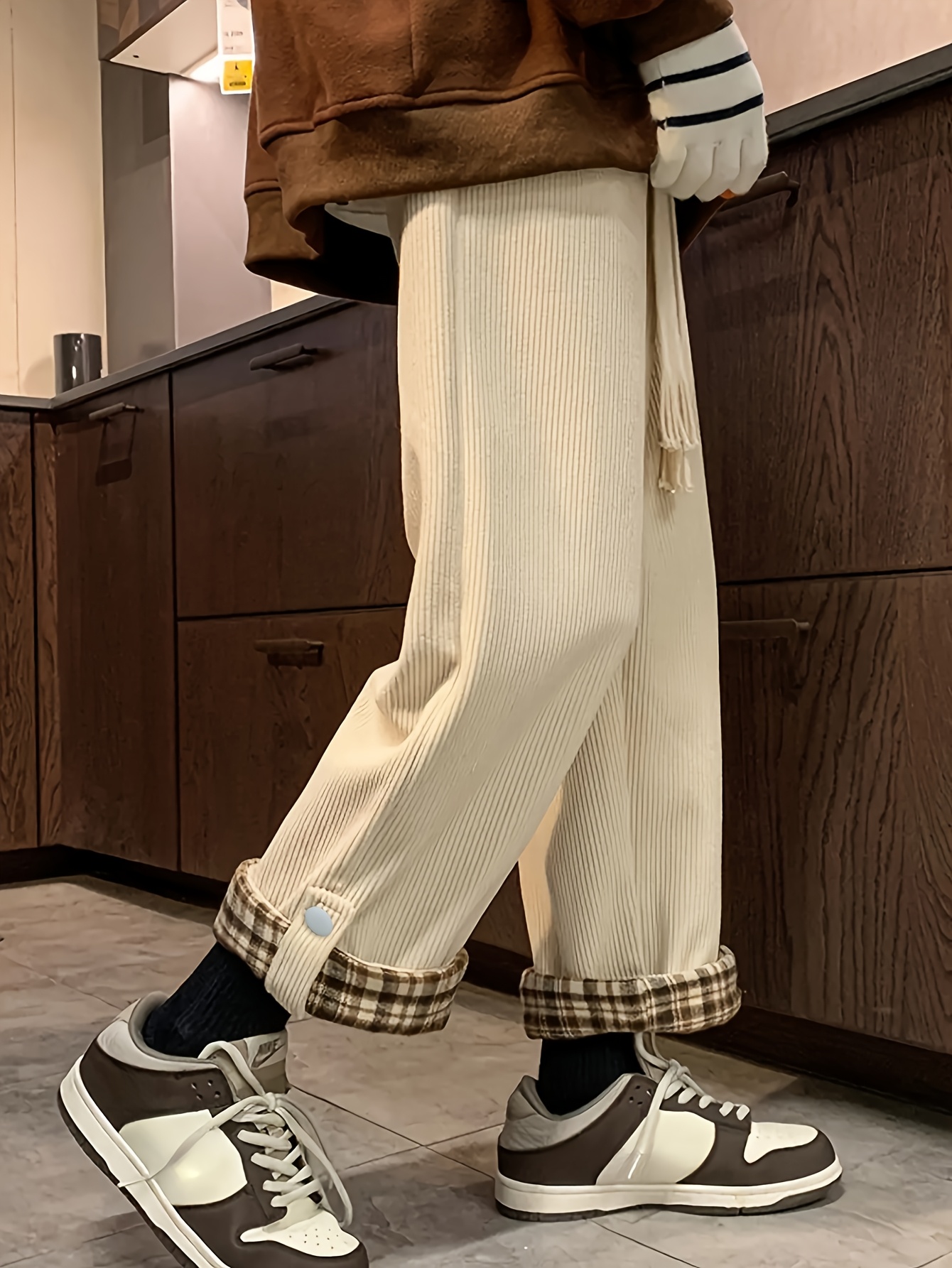 Women's Spring and Autumn Plaid Flared Pants Korean Style Loose Straight Leg Trousers